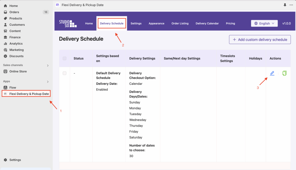 • Go to Apps > Flexi Delivery & Pickup Date > Delivery Schedule.