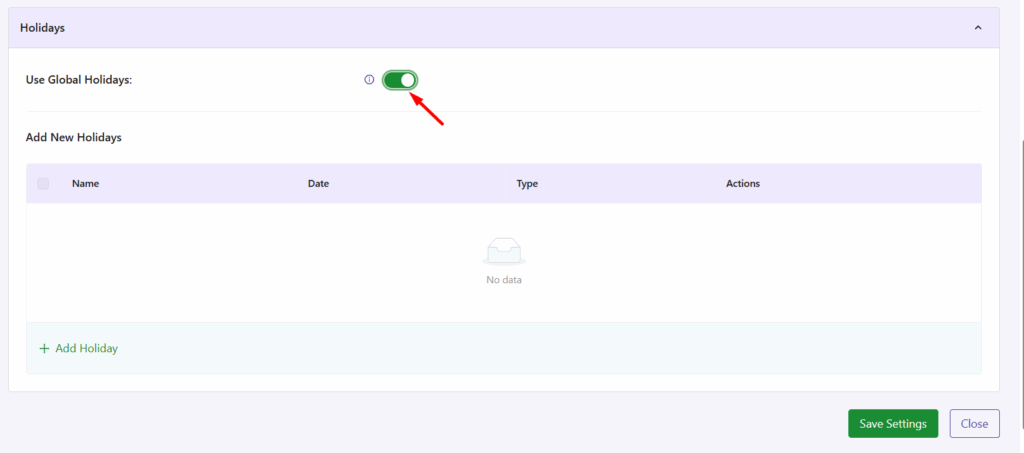 • If you don’t want to include global holidays, simply leave the above option unchecked and set your own custom holidays instead.